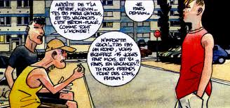 Le mouvement d’une société, voilà bien ce que Baru réussit à capter par un trait vif, un découpage rythmé. Les personnages courent, sautent, fuient en bagnole ou plongent avec une élégance désespérée d’un toit toulousain… Le plaisir de l’œil et le plaisir de la lecture, que demander de plus… Alors merci encore à Saint-Marcel !